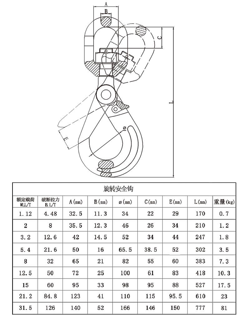 旋轉(zhuǎn)安全鉤技術(shù)參數(shù):